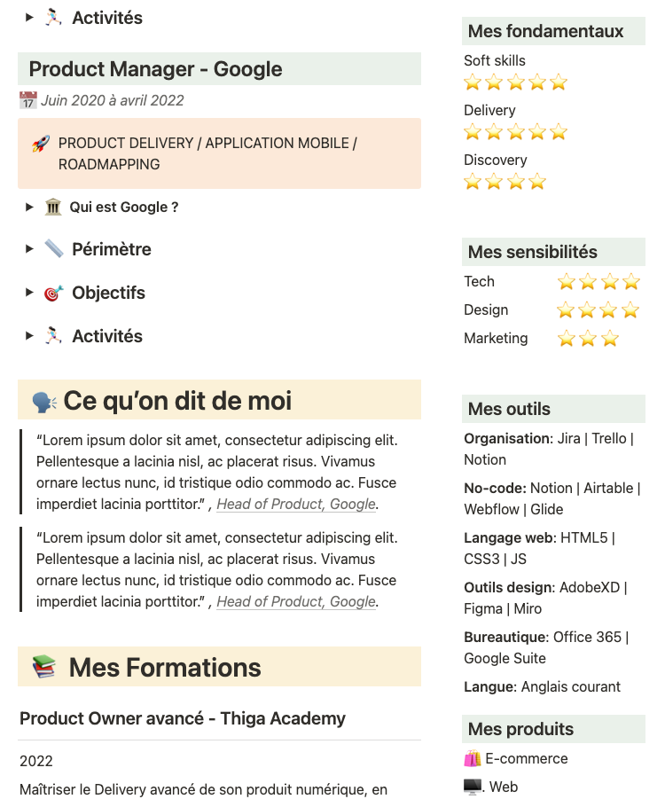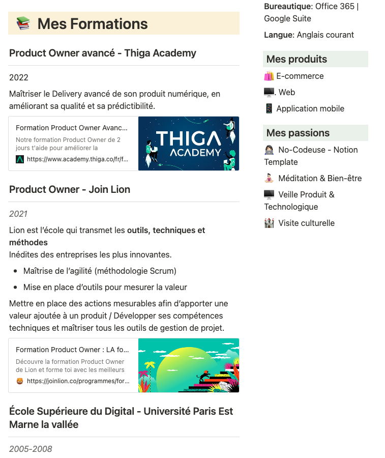 Mon CV de Product Manager 2 - Notion Template